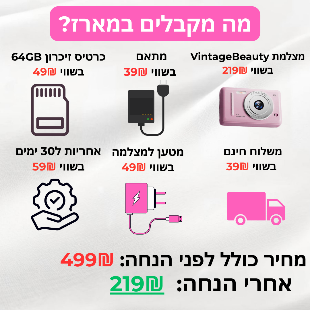 ⚠️ לאחרונה אנחנו מקבלים הרבה פניות מבנות שרכשו את המצלמה והן מסרו לנו שאחרי חודש עם המצלמה - הפניות שלהן באינסטגרם עלו פי 8!